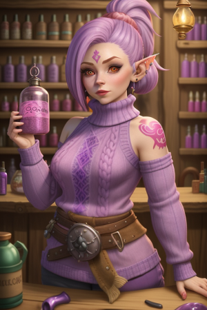 Гномка, хозяйка магазина «Ароматная лилия». Здесь можно найти краски, духи, зелья и косметику, а также сделать татуировку.